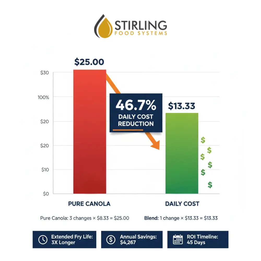 The blend’s enhanced stability delivers measurable improvements in oil longevity that translate directly to your bottom line.