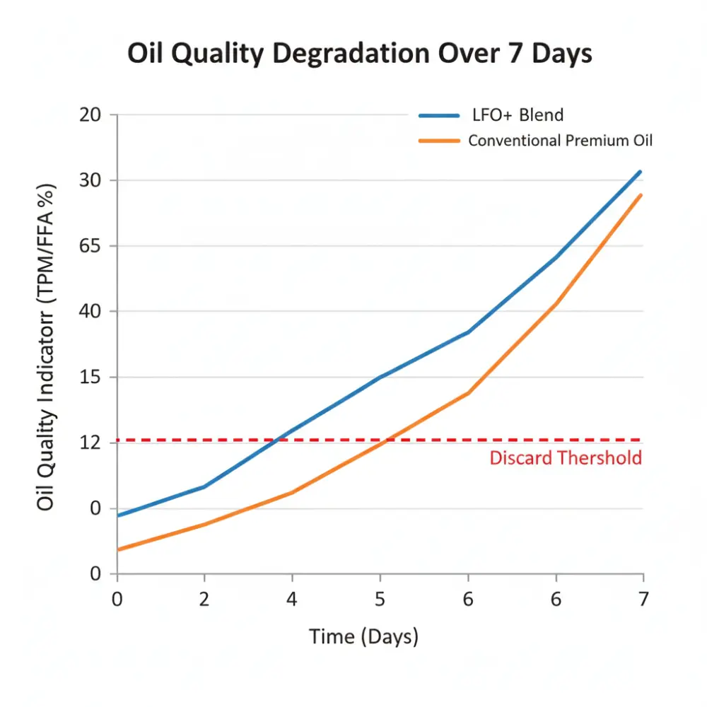 Proactive Quality Assurance: We track TPM (total polar materials) and FFA against your discard threshold to schedule changeouts proactively.