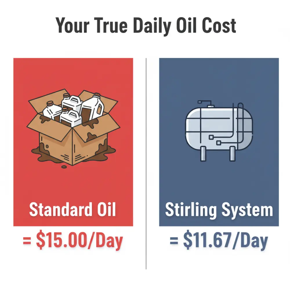 es, because it’s a “budget-conscious upgrade”. The premium blend lasts significantly longer, so your cost per day is lower. When you add the savings from eliminated labor (no hauling jugs) and the credit we pay you for your used oil, the total operational cost is far less than with “cheap” oil.